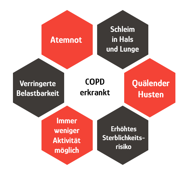 Beim Ausatmen in das Mundstück des Atemtherapiegeräts lässt sich der in Ihren Bronchien festsitzende Schleim lösen. Dies funktioniert folgendermaßen:
